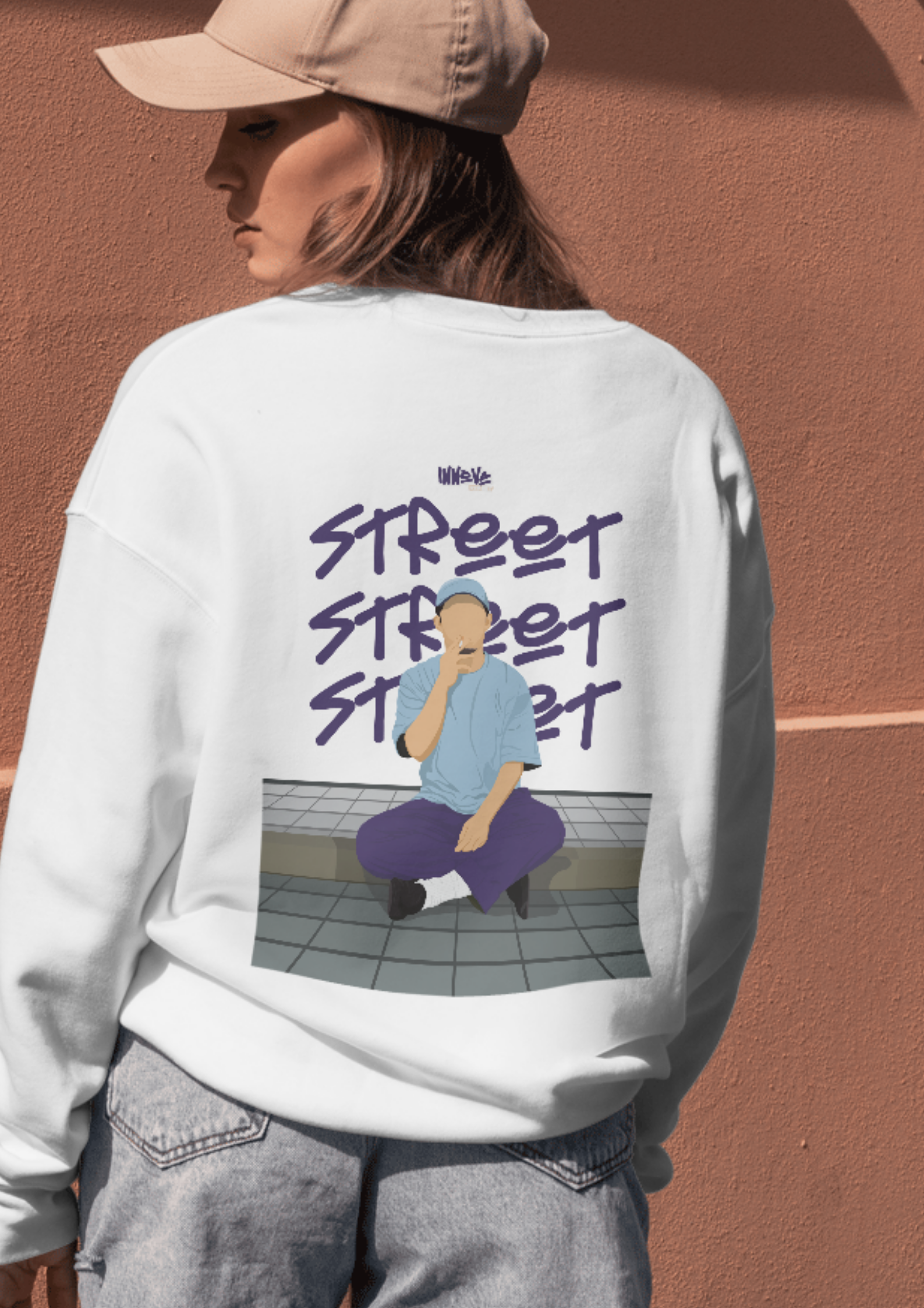 Minimaliste à l’avant, expressif à l’arrière. Ce pull blanc Innova Street se distingue par son illustration imprimée au dos, inspirée par la culture urbaine et l’univers musical.